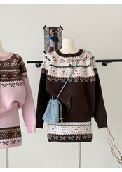 冬のガーリーコーデが完成するノルディックニットセットアップ。