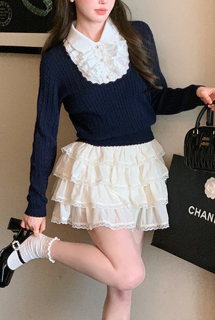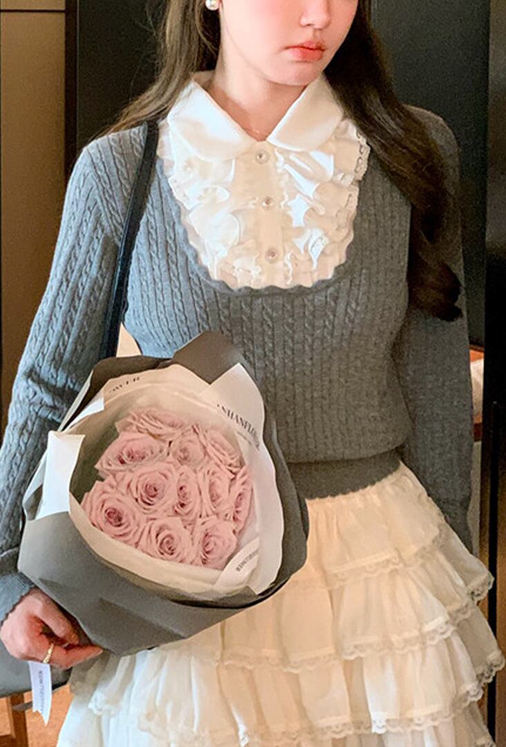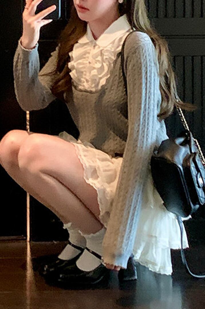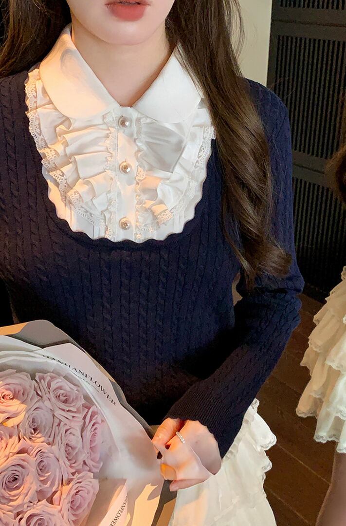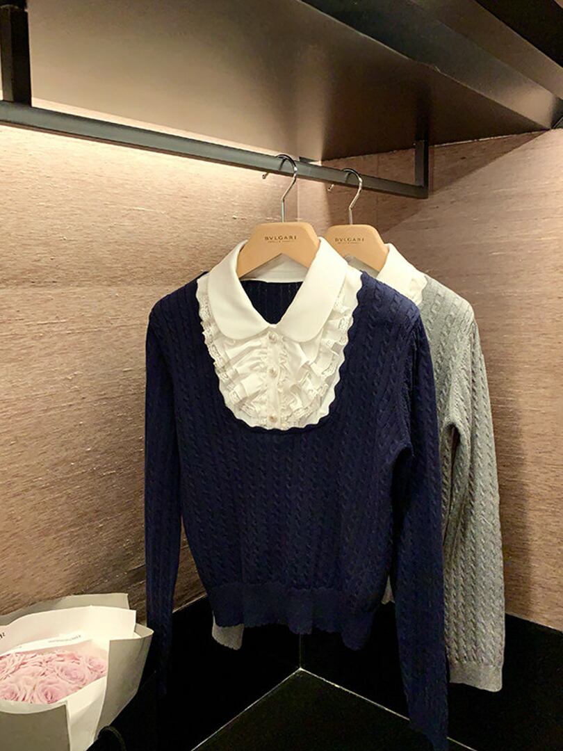 繊細なフリルレース襟が顔まわりをぱっと華やかに見せてくれて、