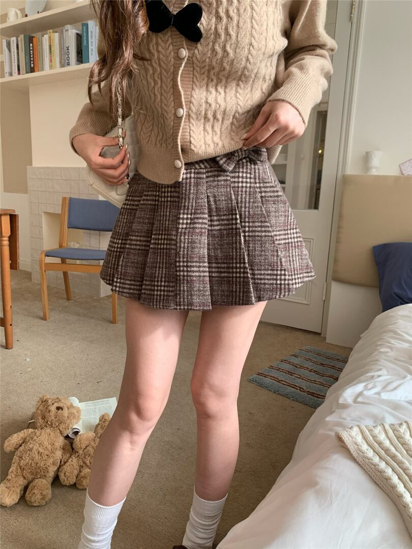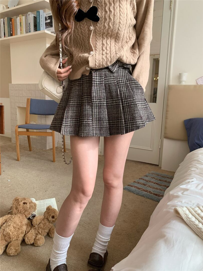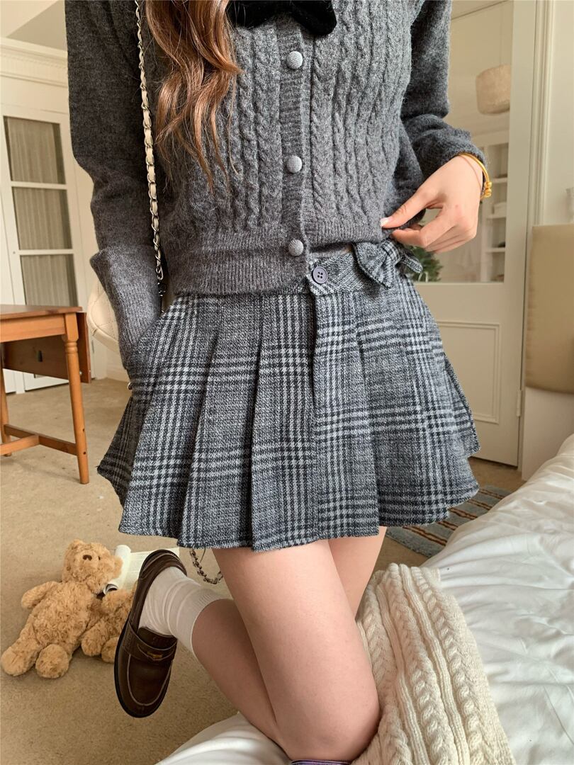 クラシカルなチェック柄に、ガーリーなミニ丈を掛け合わせた一着。