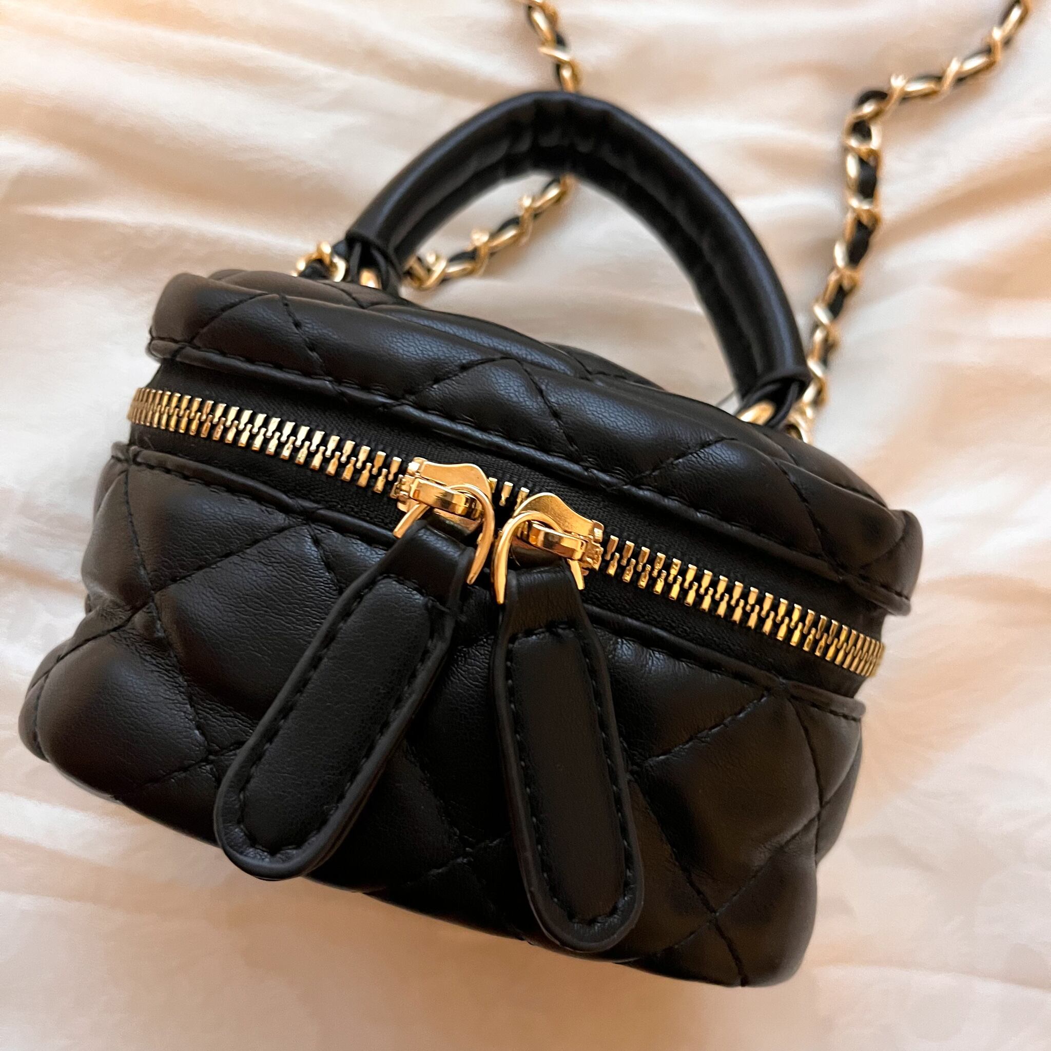 幅が小さいためiPhoneサイズのスマートフォンは入りません。リップや鍵などを入れるのがおすすめです。