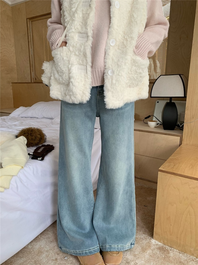 デザインダメージハイウエストワイドレッグジーンズ LK1422